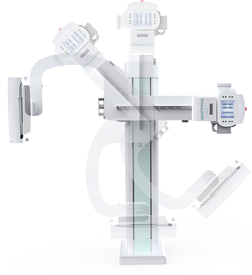 多功能动态平板DR,采用U型臂结构,具有静态DR摄影、数字透视、数字造影和可视化摄影的功能。
